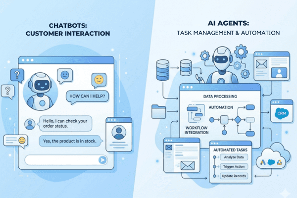 AI Agents vs Chatbots means comparing two AI tools used by businesses.