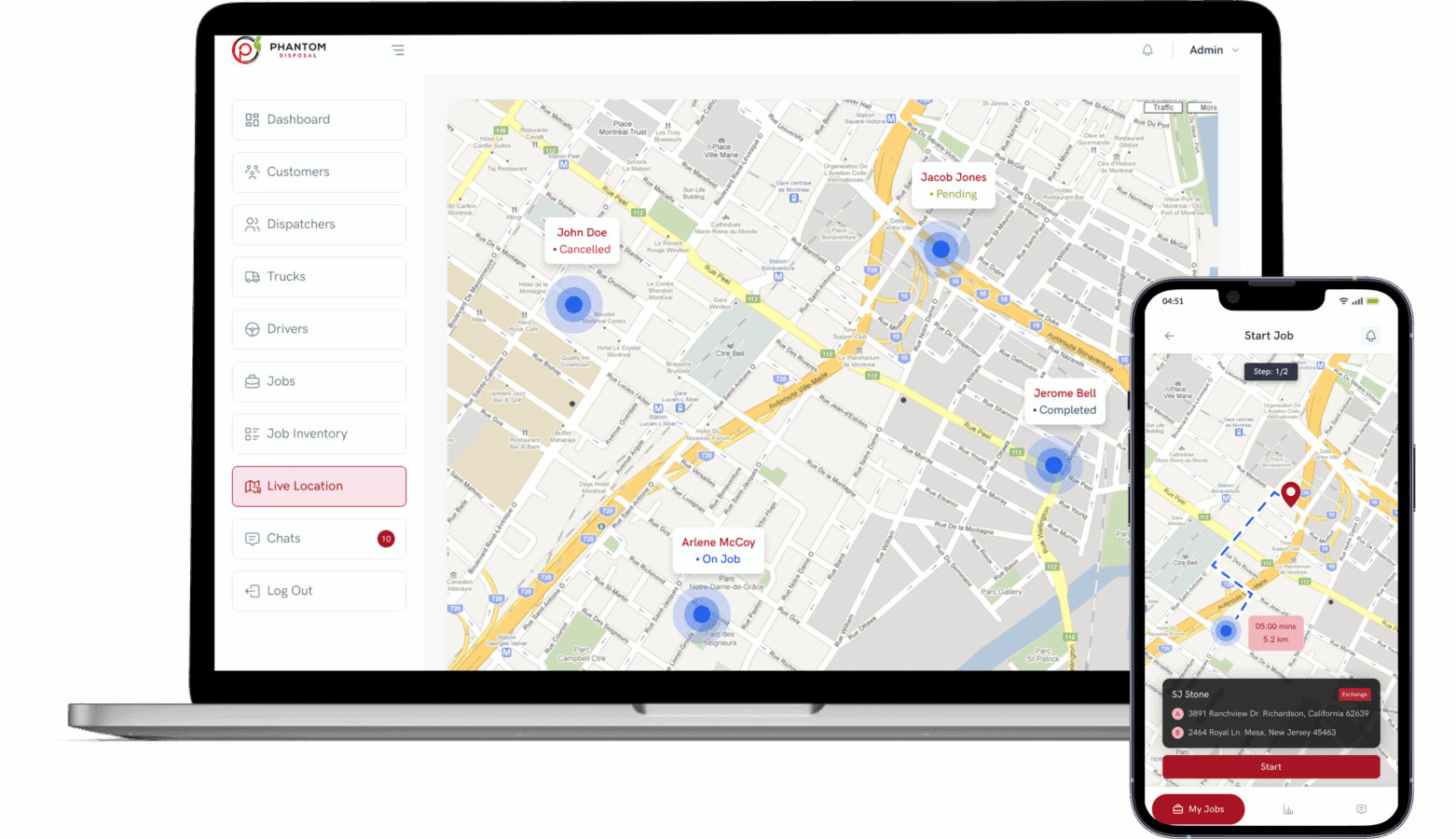 We built Phantom Disposal, a React Native based fleet management app enabling real-time job dispatch, GPS tracking, background location services, and live chat between drivers and dispatchers ensuring smooth operations and accountability.